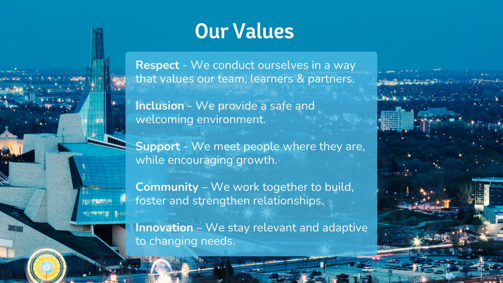 Our vision is that all Manitobans have access to the Essential Skills knowledge and training required to determine and pursue their goals related to learning, the workplace and life.