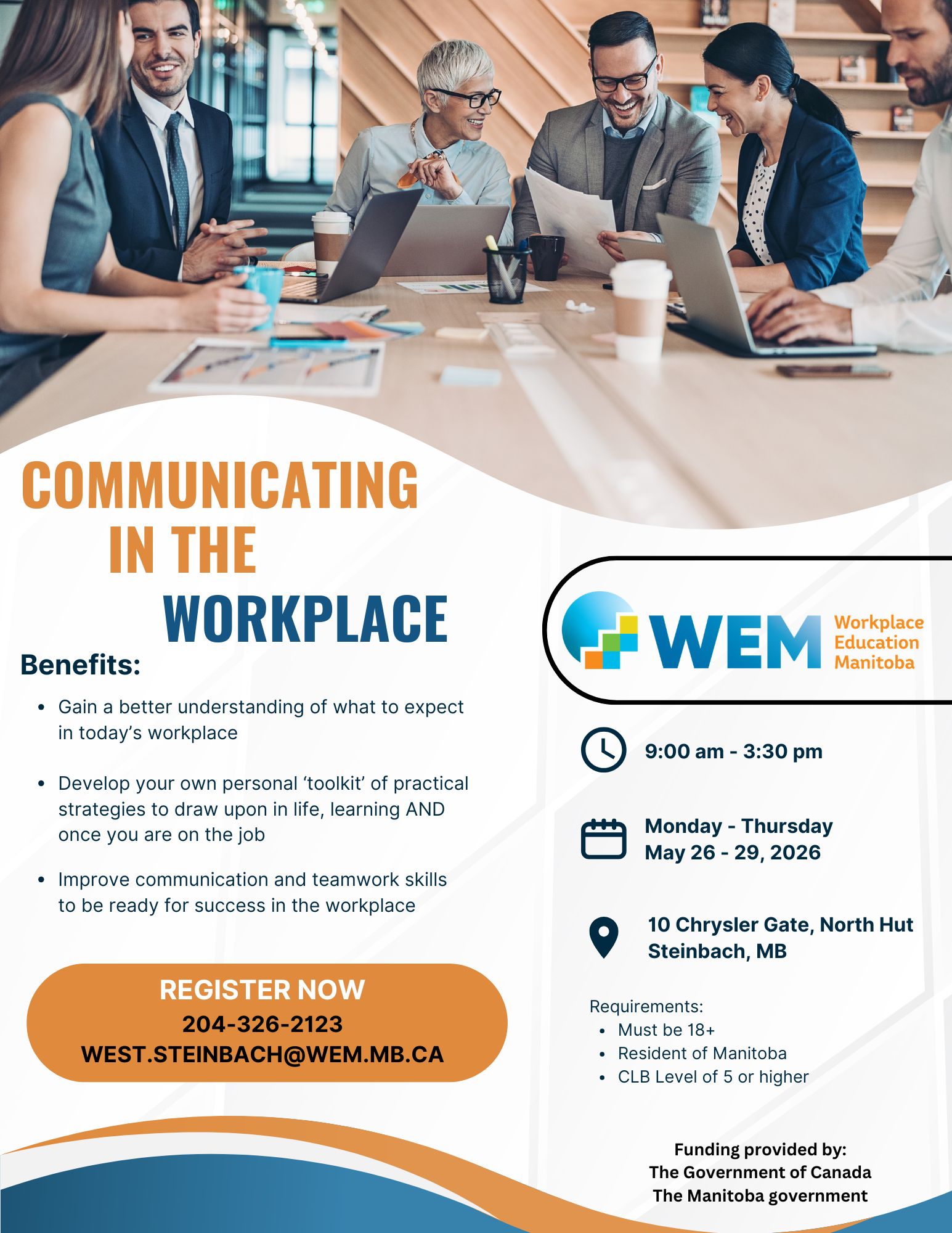 Communicating in the Workplace Workshop 00 days 00 hours 00 minutes 00 seconds Recent CommentsJasmine Ferriss on Personal Management Basics WorkshopsChyna Fehr on Personal Management Basics WorkshopsCategories Media Release